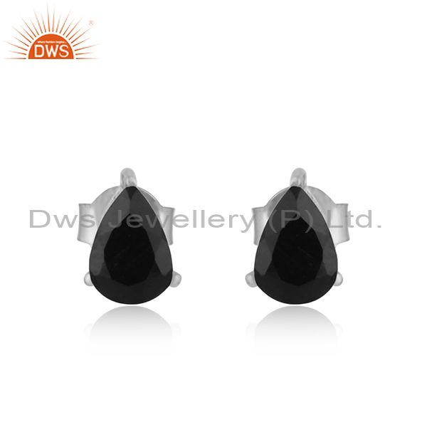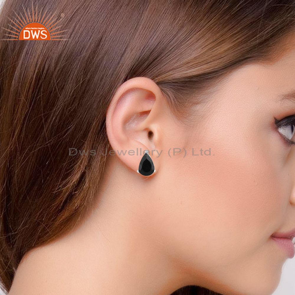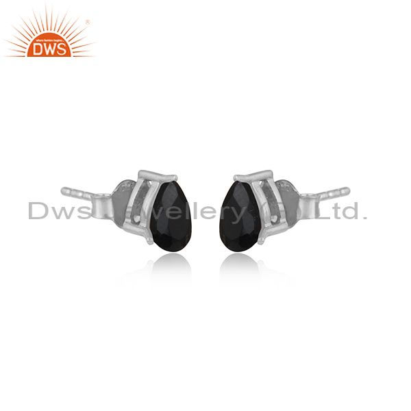 Designer Dainty Sterling Silver 925 Studs With Natural Black Onyx