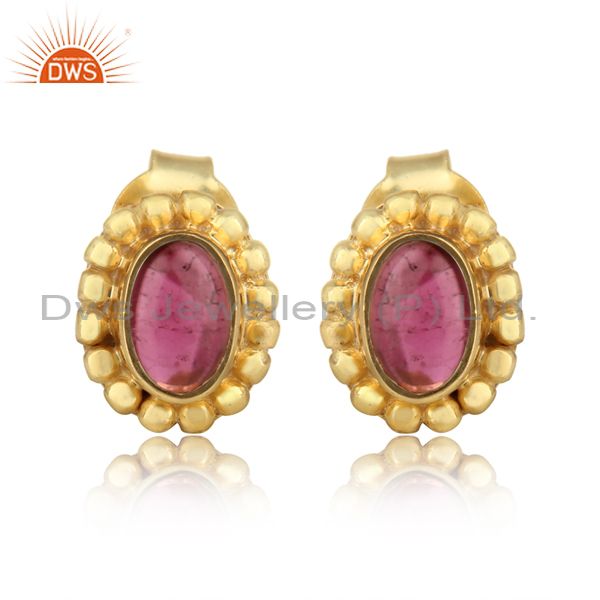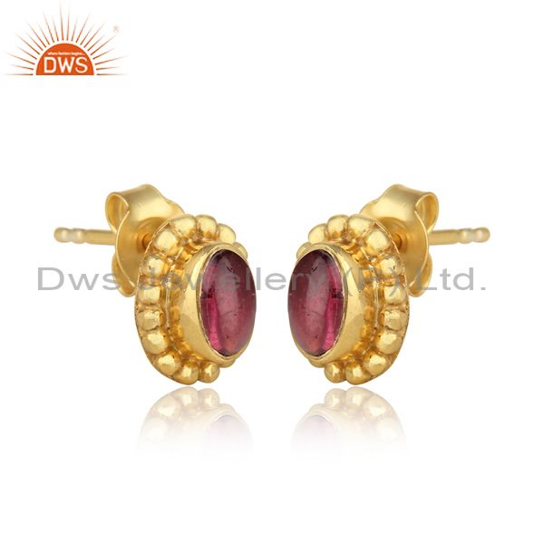 Designer Dainty Stud in Yellow Gold on Silver with Pink Tourmaline
