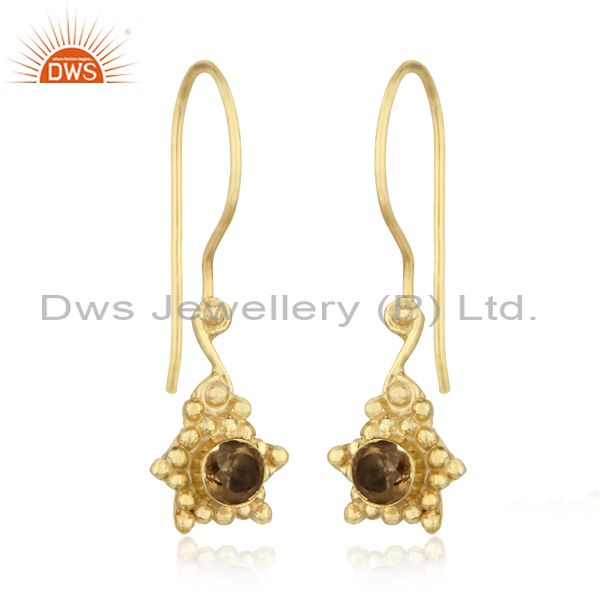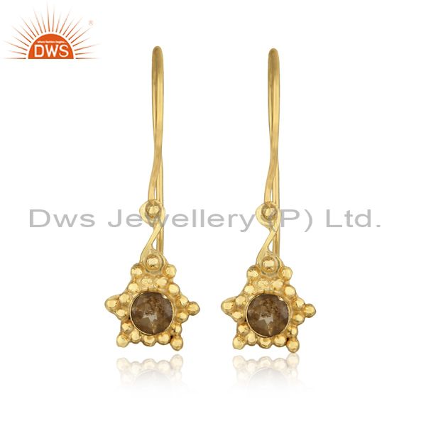 Designer Dangle Earring in Yellow Gold on Silver Studded with Citrine