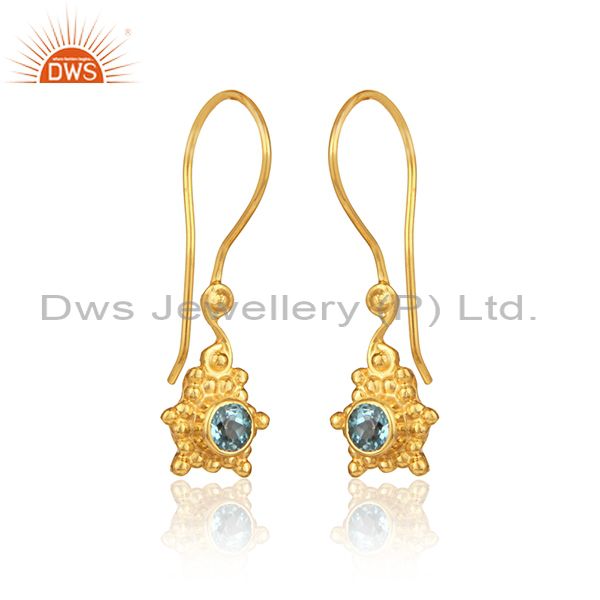 Designer Dangle Earring in Yellow Gold on Silver with Blue Topaz