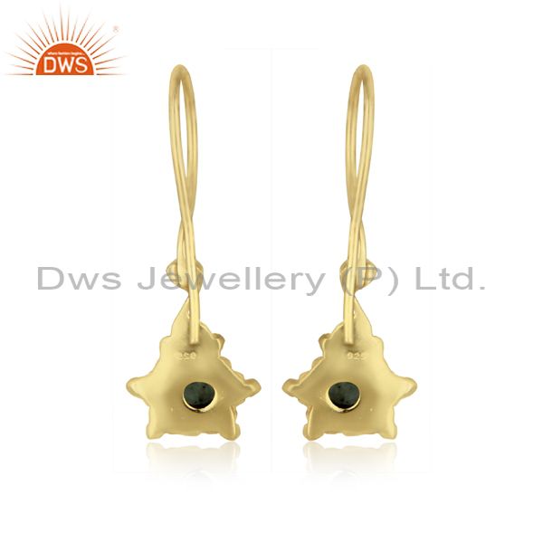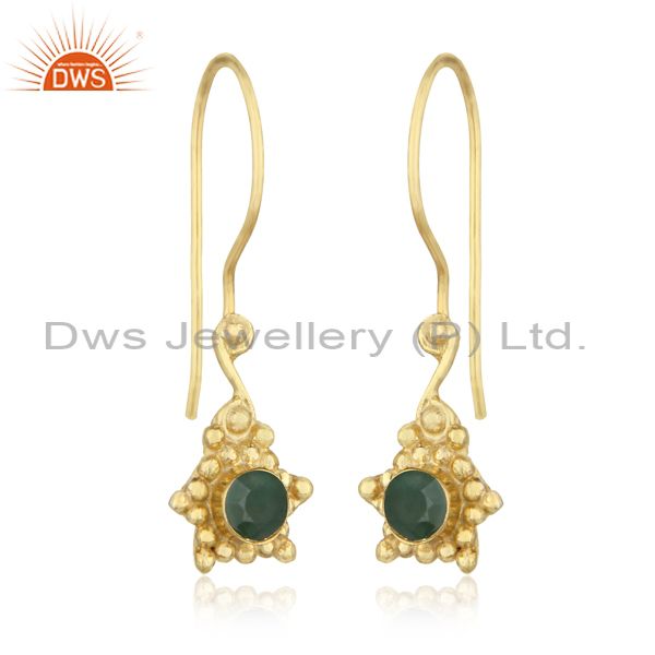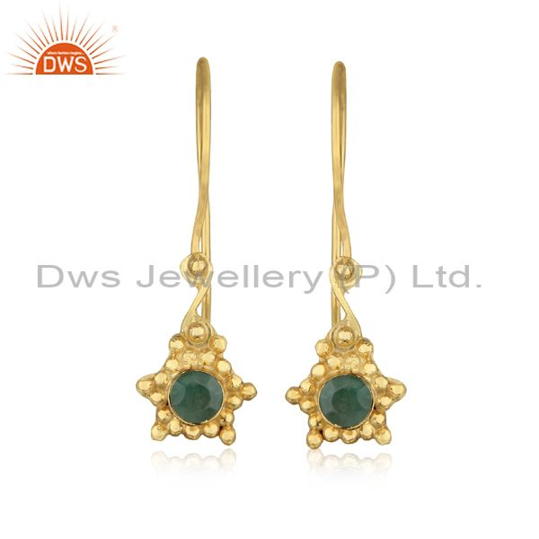 Designer Dangle Earring in Yellow Gold on Silver with Emerald