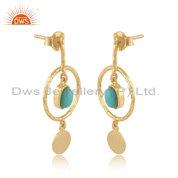 Designer Dangle Gold Plated 925 Silver Arizona Turquoise Earrings