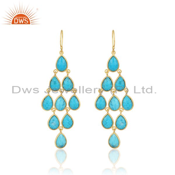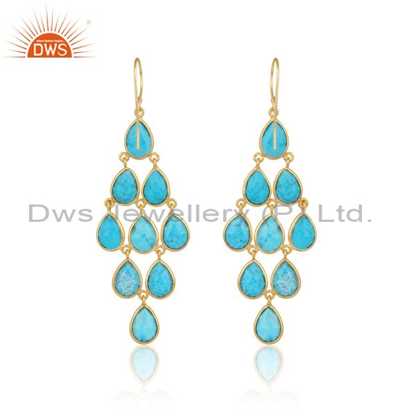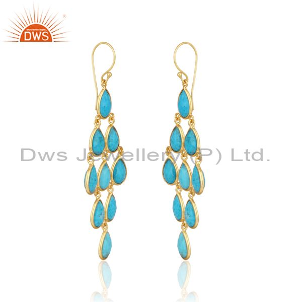 Designer Exquisite Turquoise Chandelier In Gold On Silver 925