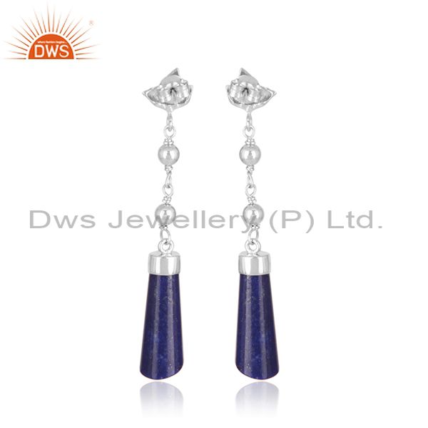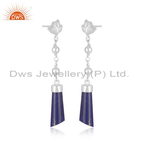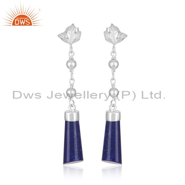 Designer Fine Sterling Silver Natural Lapis Lazuli Gemstone Earrings