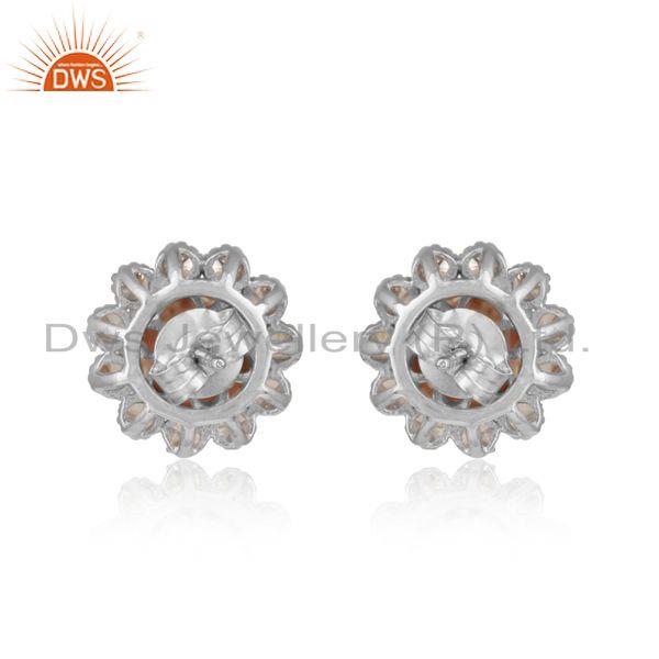 Designer Floral Rhodium On Silver 925 Stud With Gray Pearl And Cz