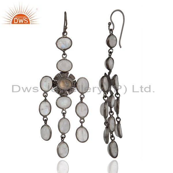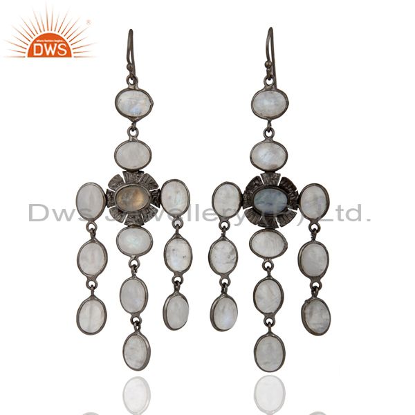 Designer Gemstone Party Wear Dangle Earrings Natural Rainbow Moonstone Jewelry