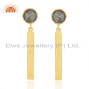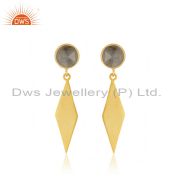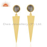 Designer Gold Plated 925 Silver Labradorite Gemstone Earrings Jewelry