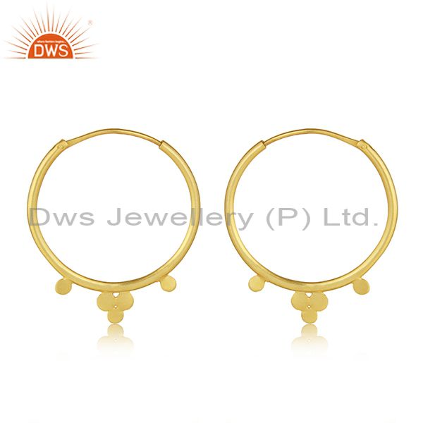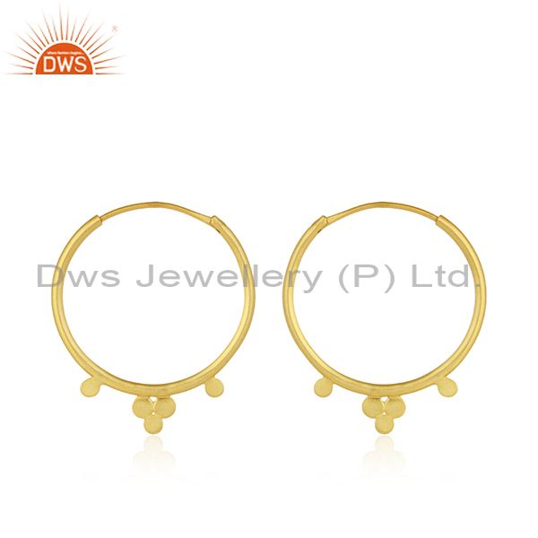 Designer Gold Plated 925 Silver Womens Bali Hoop Earrings Jewelry