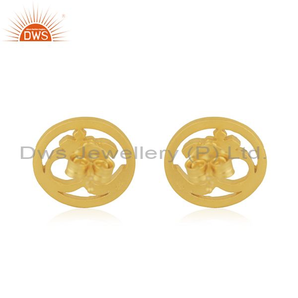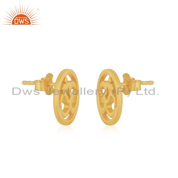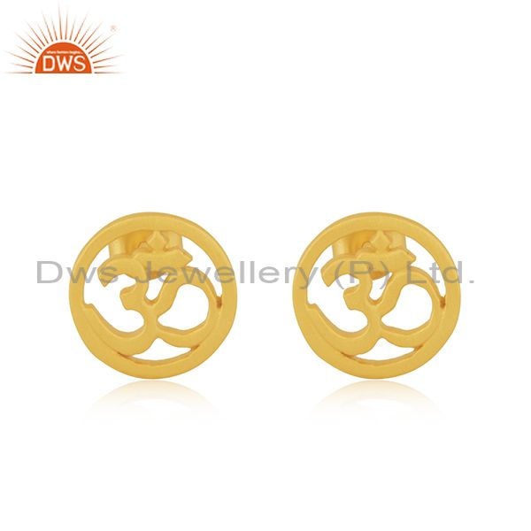 Designer Gold Plated OM Charm Plain Silver Stud Earring Jewelry