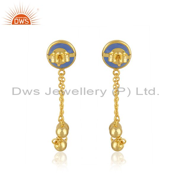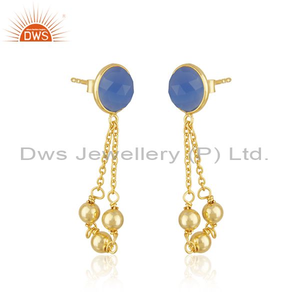 Designer Gold Plated Silver Blue Chalcedony Gemstone Earrings