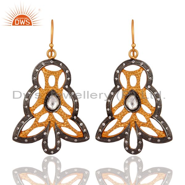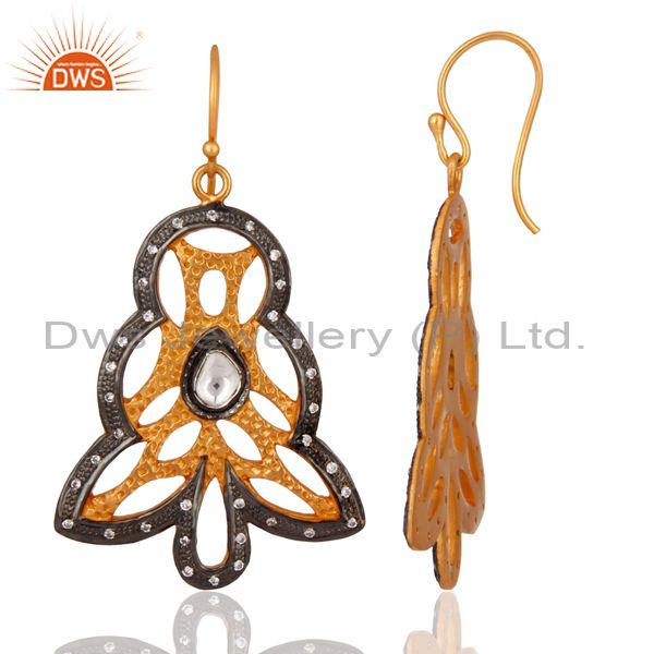 Designer Gold Plated Sterling Silver White Zircon Handmade Crystal Earring