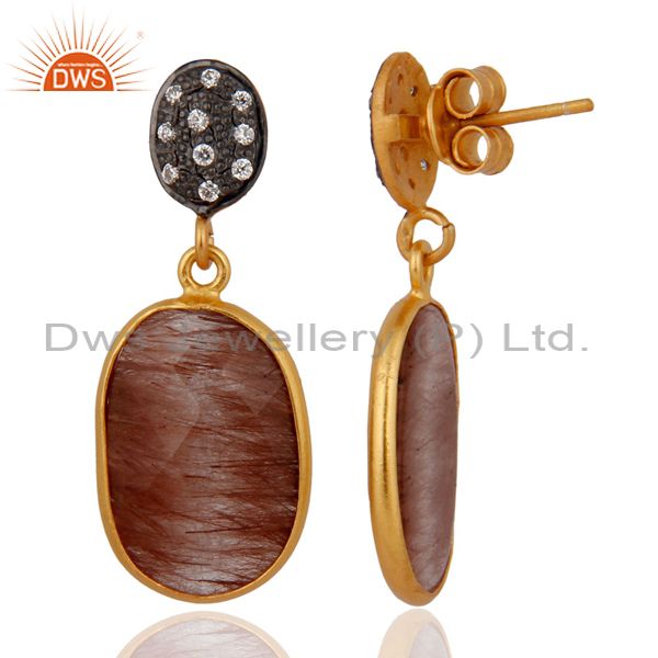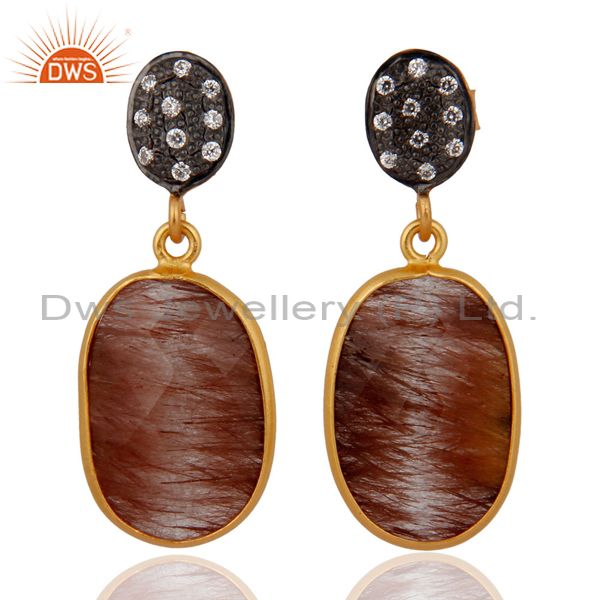 Designer Golden Rutilated Quartz Earrings Made In 925 Sterling Silver Jewelry