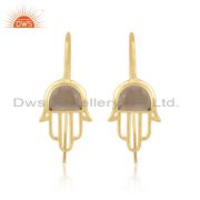 Designer Hamsa Hand Gold on Silver 925 Studs with Smoky