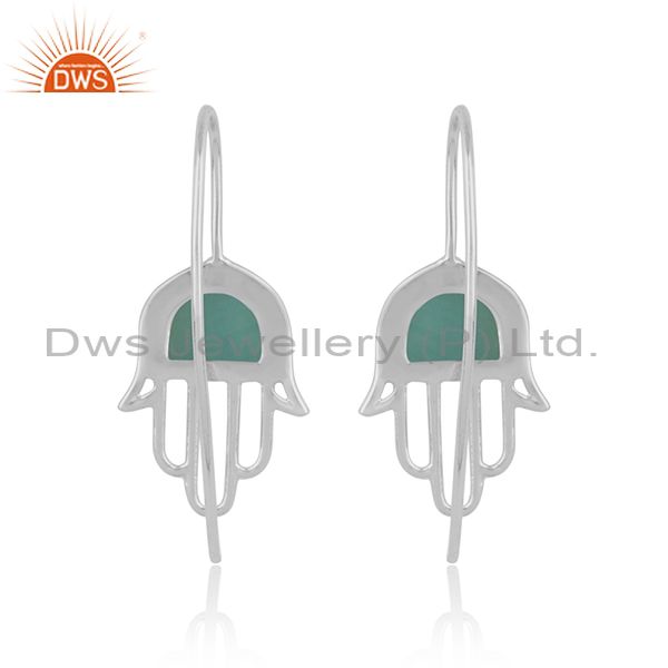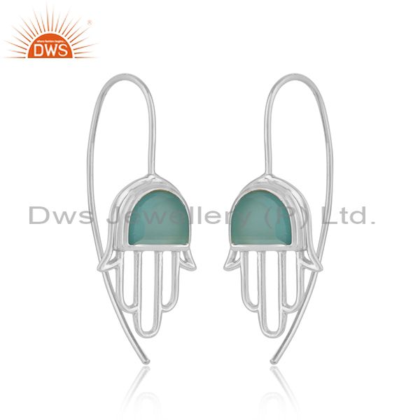 Designer Hamsa Hand Silver 925 Earring With Aqua Chalcedony