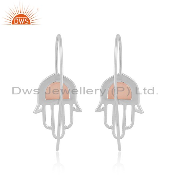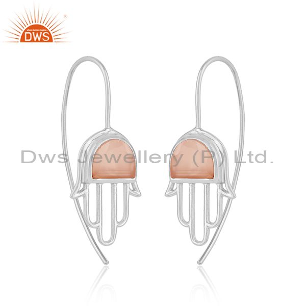 Designer Hamsa Hand Silver 925 Earring with Rose Chalcedony