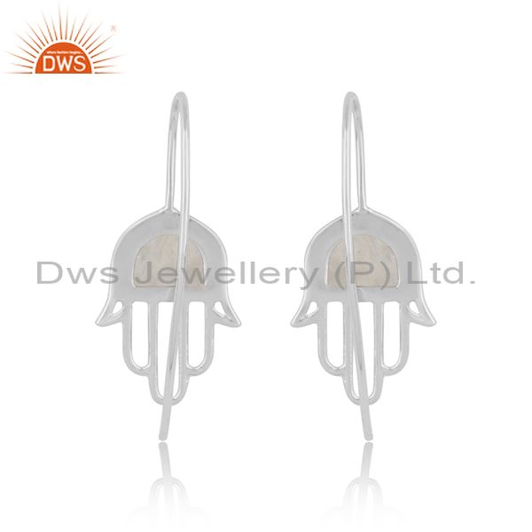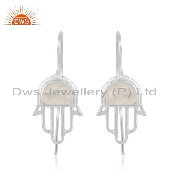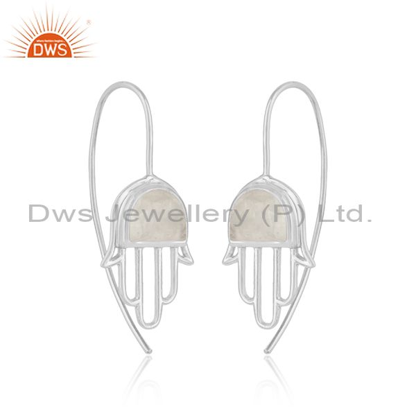 Designer Hamsa Hand Silver Earring with Rainbow Moonstone