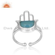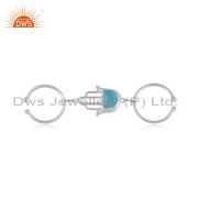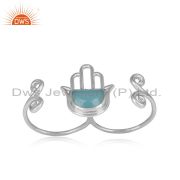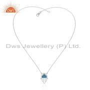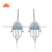 Designer Hamsa Hand Silver Long Dangle with Blue Chalcedony