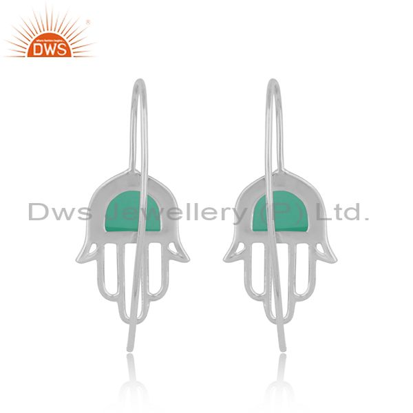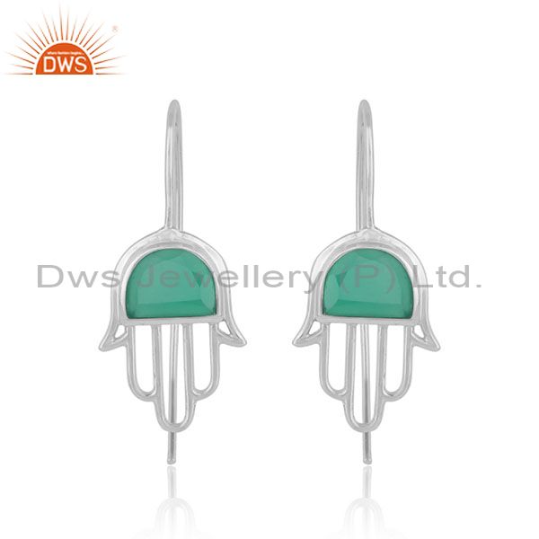Designer Hamsa Hand Sterling Silver Earring with Green Onyx