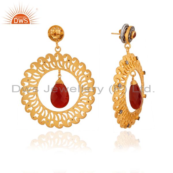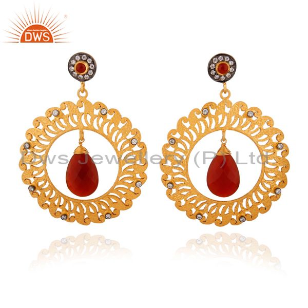 Designer Handcrafted .925 Sterling Silver Red Onyx Drop Dangle Earring Jewelry
