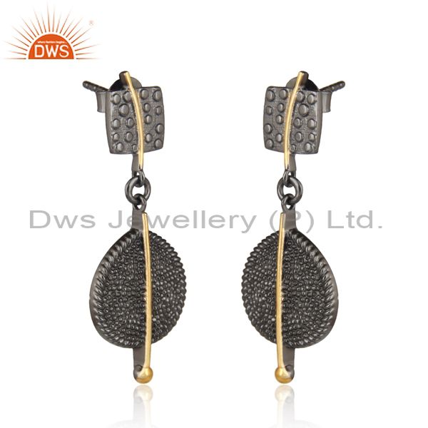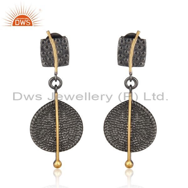Designer Handextured Yellow Gold on Silver Dualtone Dangle Earring