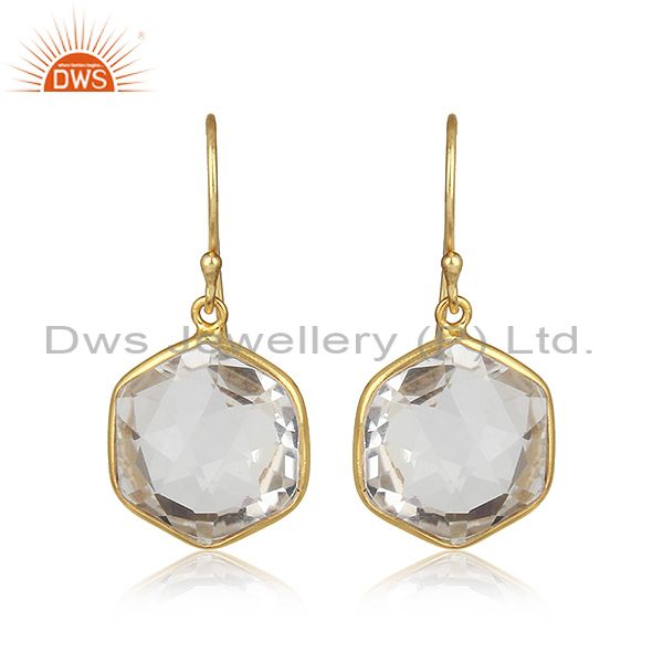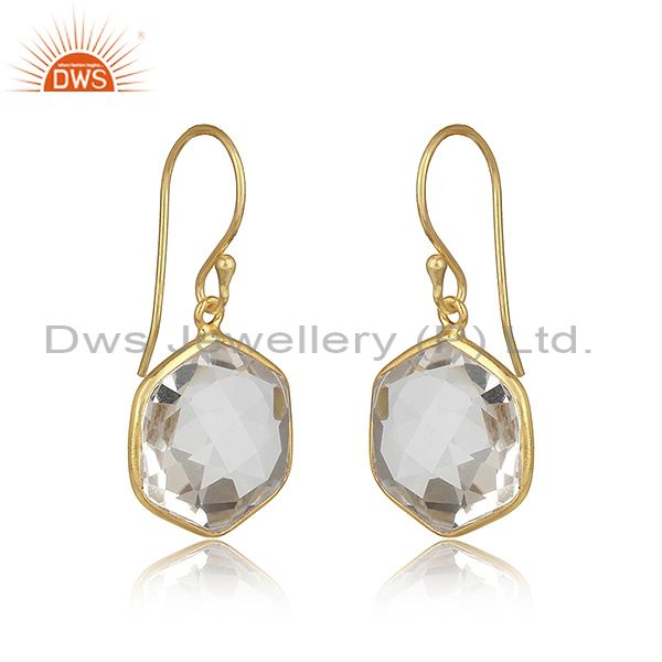 Designer Haxagon Crystal Quartz Dangle In Yellow Gold On Silver