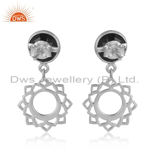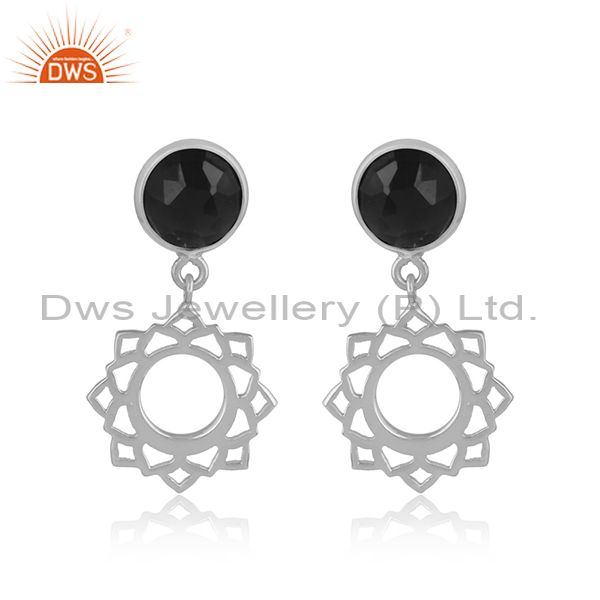 Designer Heart Chakra Earring in Silver 925 With Black Onyx
