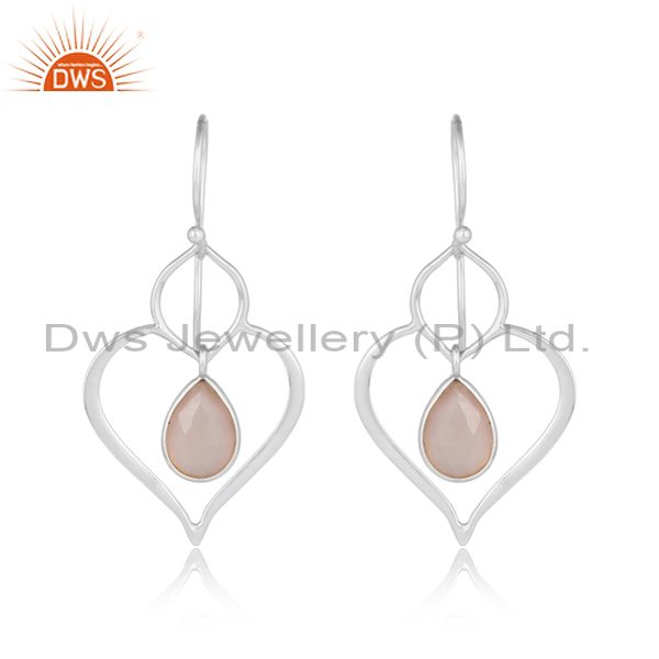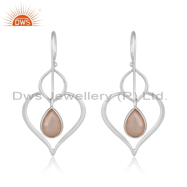 Designer Heart Dangle Earring In Solid Silver With Rose Chalcedony