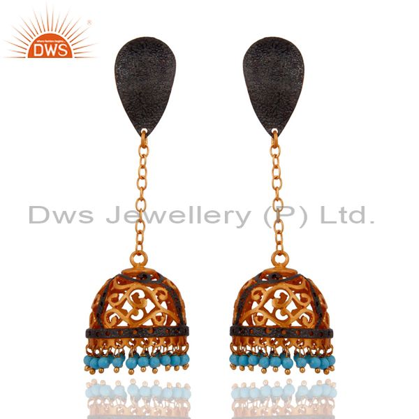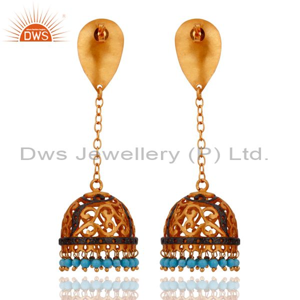 Designer Indian Ethnic Gemstone Turquoise 22K Gold Plated Dangle Earrings