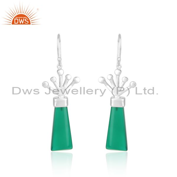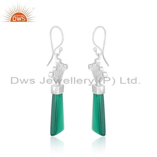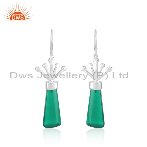 Designer Long Green Onyx Dangle Earring in Rhodium on Silver 925