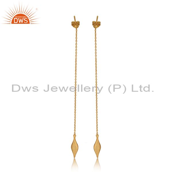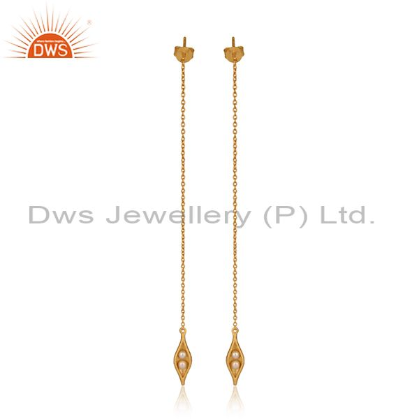 Designer Long Seedpod Pearl Earring in Yellow Gold on Silver 925