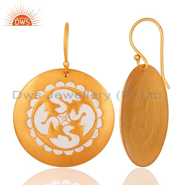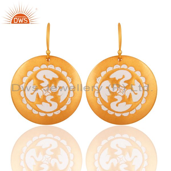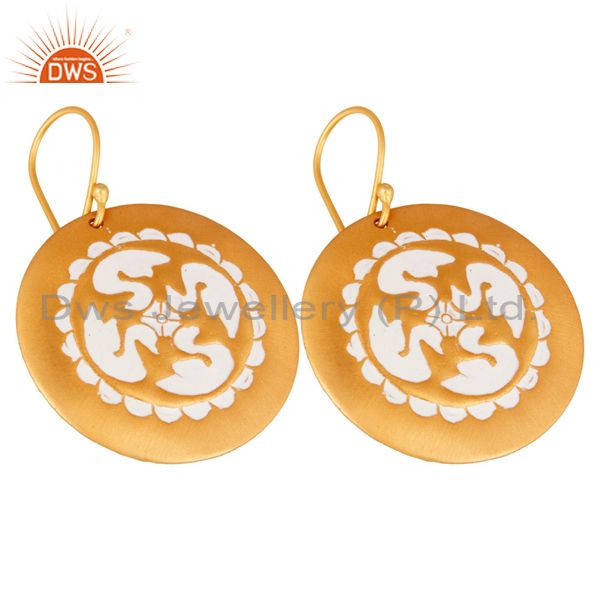 Designer Look White Enamel 22K Yellow Gold Plated Brass Handmade Dangle Earring