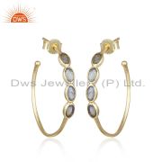 Designer Multistone Yellow Gold On Silver Labradorite Earring