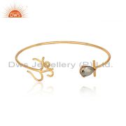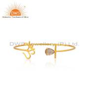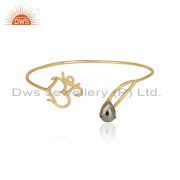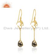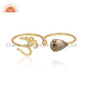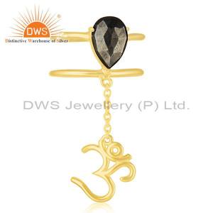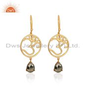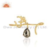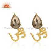 Designer Om Earrings in Yellow Gold on 925 Silver with Pyrite