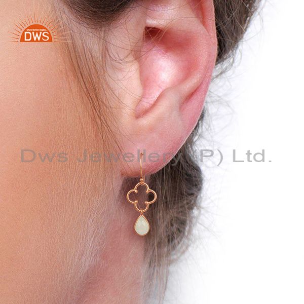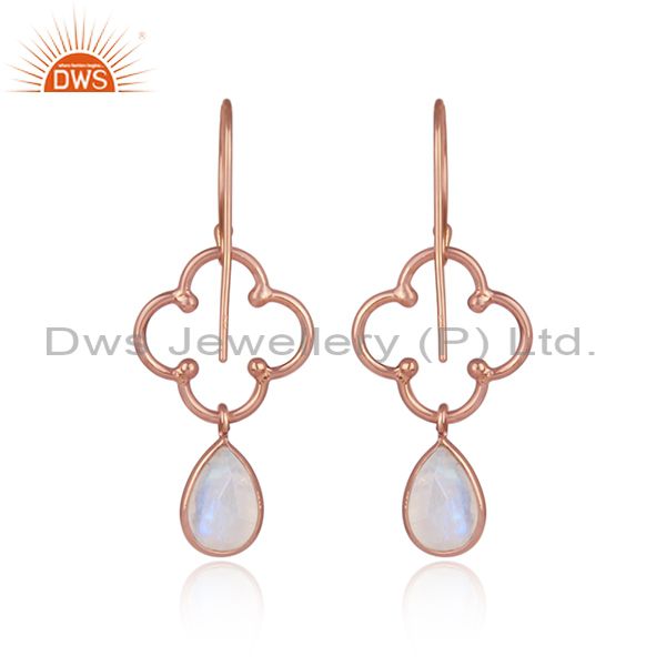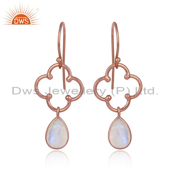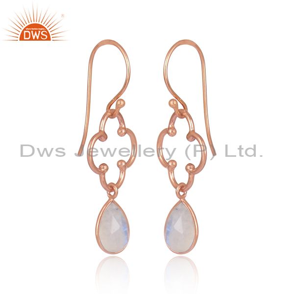 Designer Rose Gold Plated Silver Rainbow Moonstone Earrings Supplier