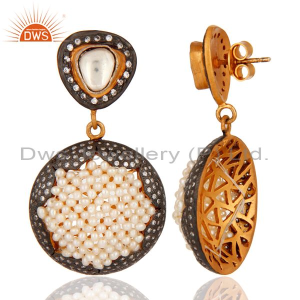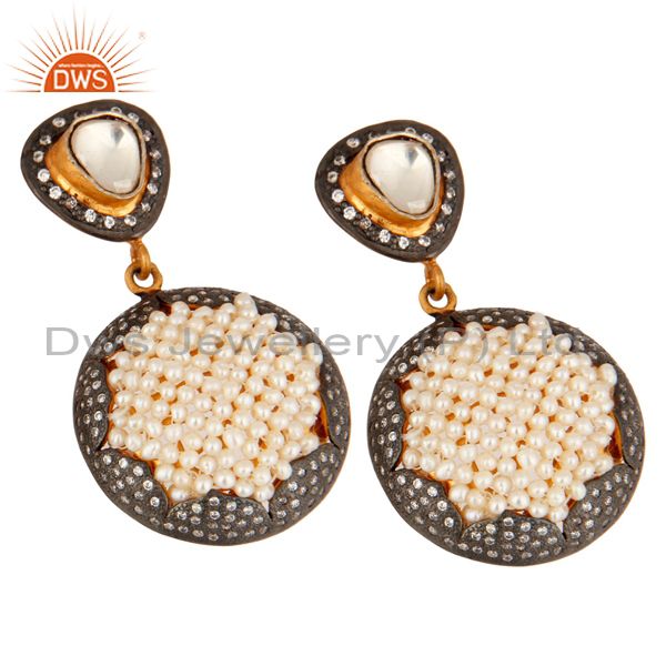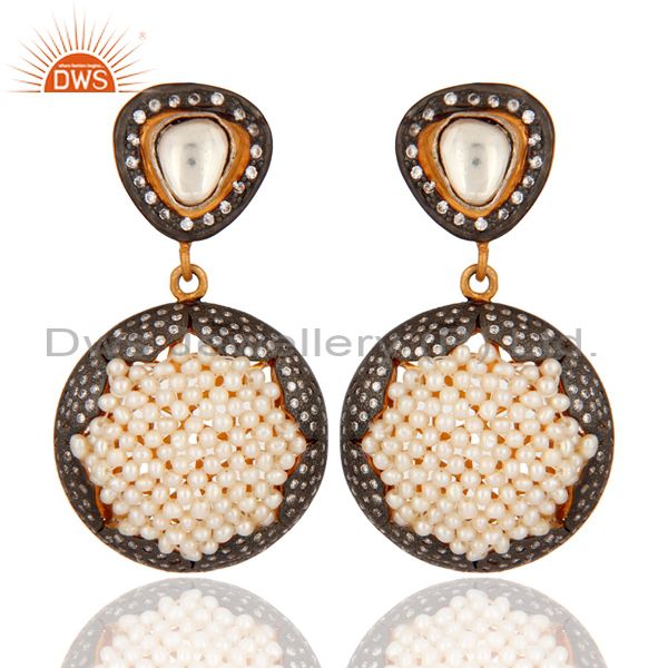 Designer Seed Pearl Beaded & White Zircon 925 Sterling Silver Handmade Earring
