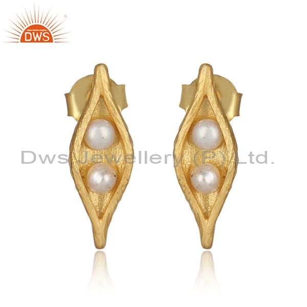 Designer Seedpod Natural Pearl Stud In Yellow Gold On Silver 925