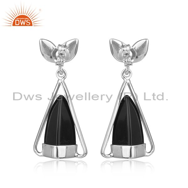 Designer Silver Earring With Black onyx, Cz and White Rhodium