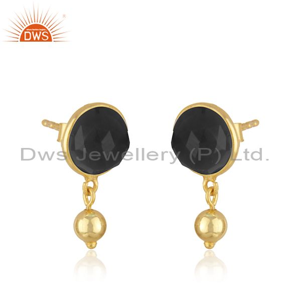 Designer Silver Gold Plated Black Onyx Gemstone Earrings Jewelry Supplier
