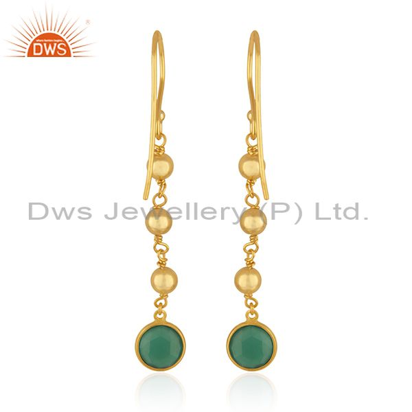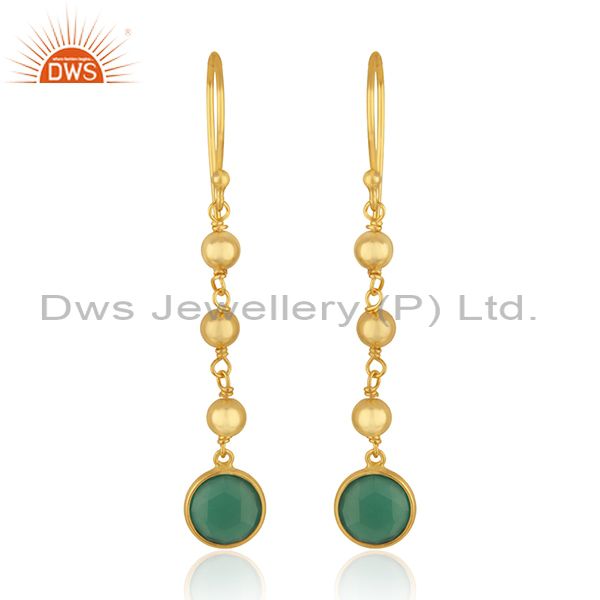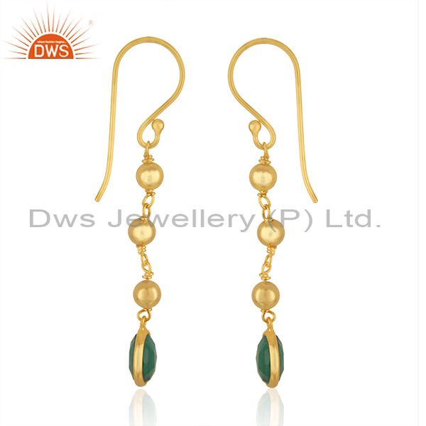 Designer Silver Gold Plated Silver Green Onyx Earrings Jewelry