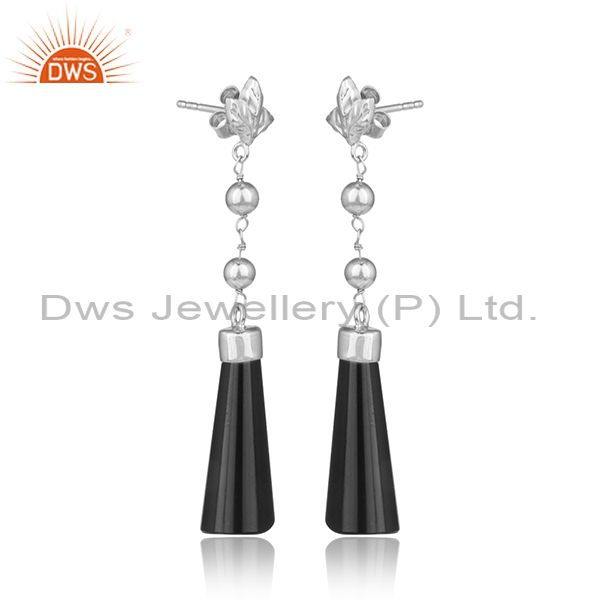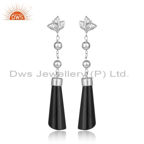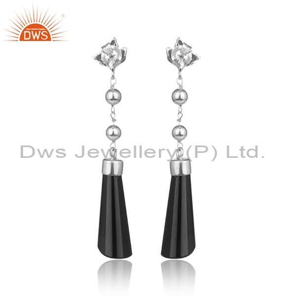 Designer Silver Longing Earring With Black onyx and White Rhodium