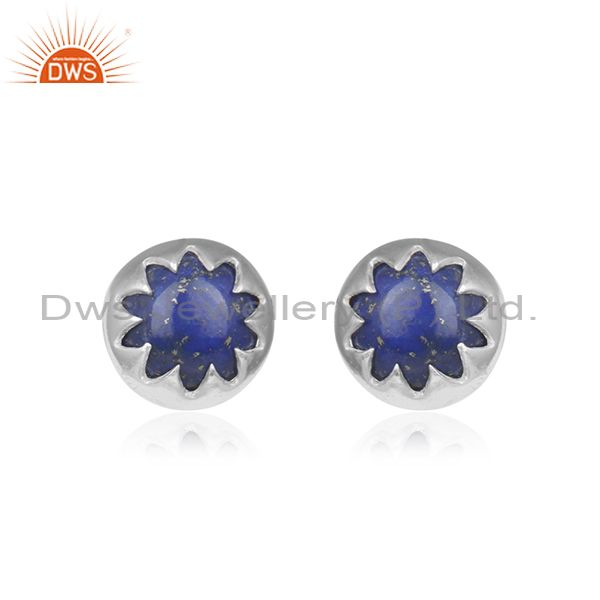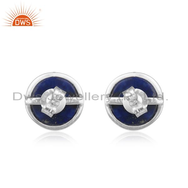 Designer Sterling Fine Silver Lapis Gemstone Stud Earrings Jewelry