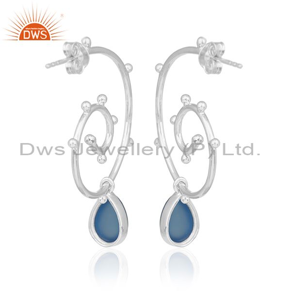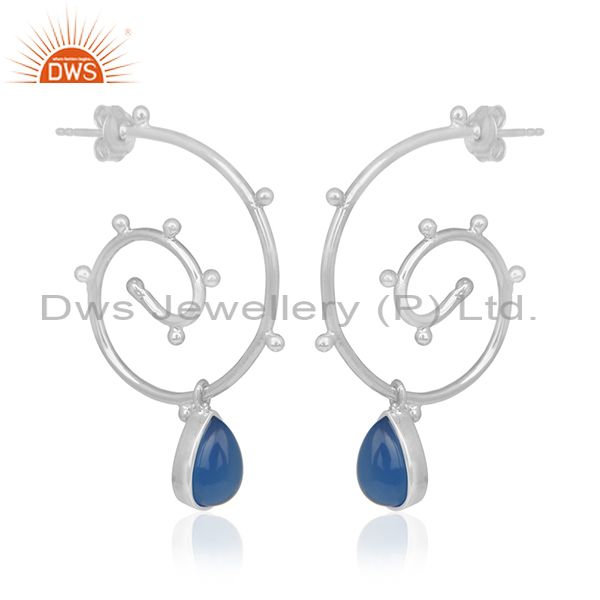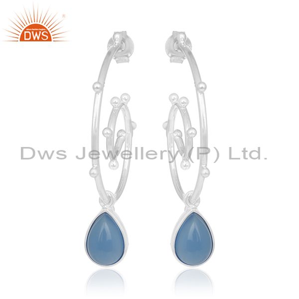 Designer Sterling Silver Blue Chalcedony Gemstone Custom Earring Manufacturer