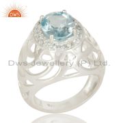 Designer Sterling Silver Blue Topaz Gemstone Prong Set Dangle Earrings