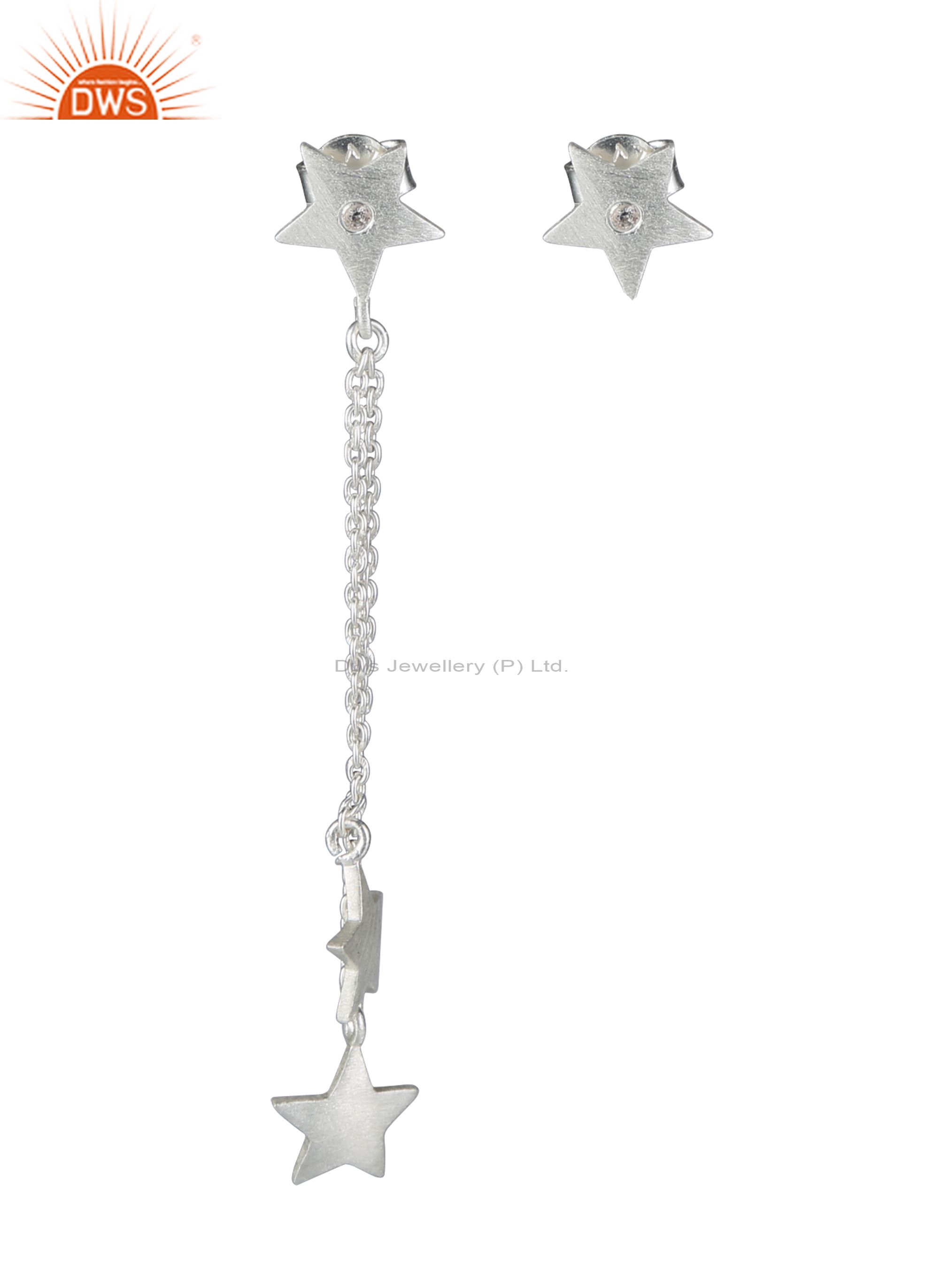 Designer Sterling Silver White Topaz Link Chain Dangle Star Stud Earrings