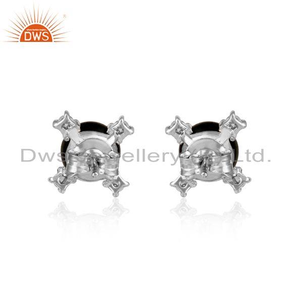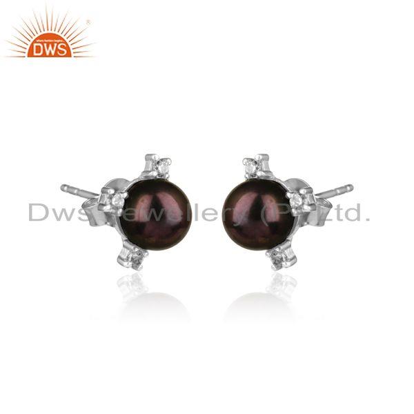 Designer Stud In Rhodium Plated Silver 925 With Cz And Gray Pearl