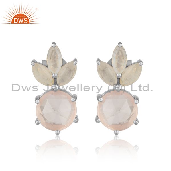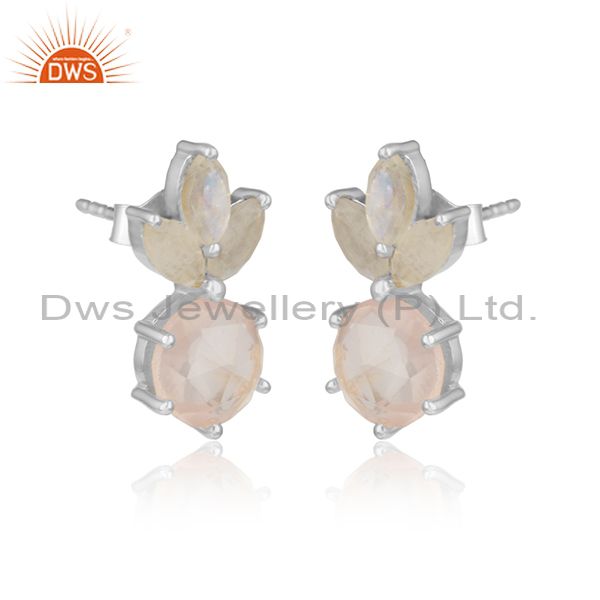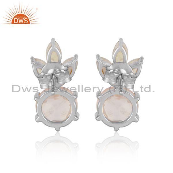 Designer Stud in Solid Silver Crafted with Adorable Rose Quartz