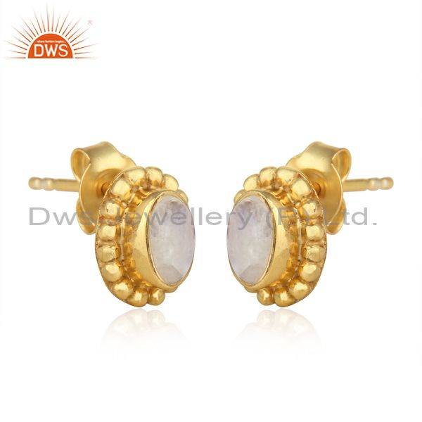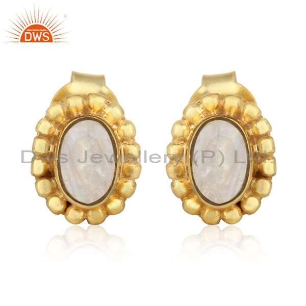 Designer Stud in Yellow Gold on Silver with Rainbow Moonstone