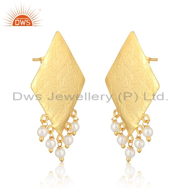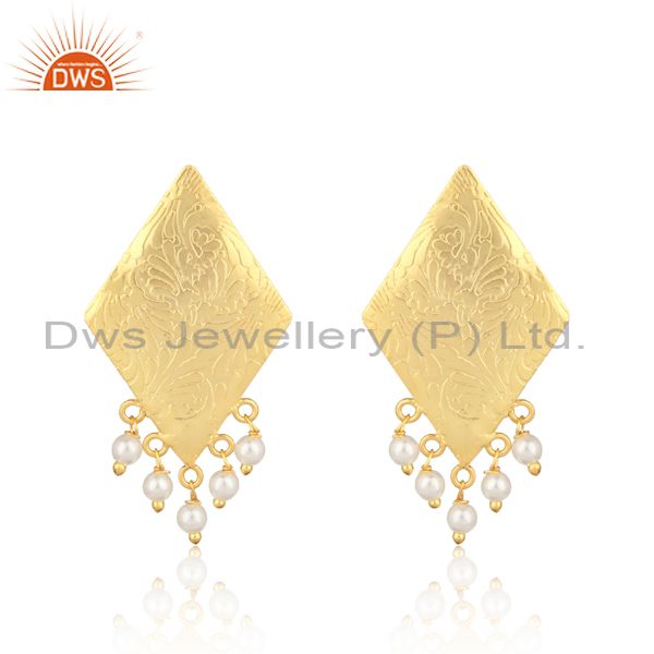 Designer Tradtional Textured Gold on Fashion Earring with Pearl