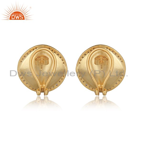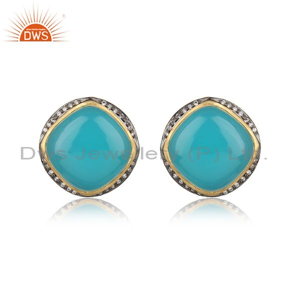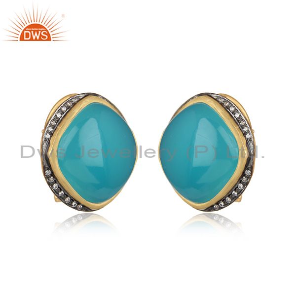 Designer Trendy Yellow Gold on Silver Studs with Aqua Chalcedony