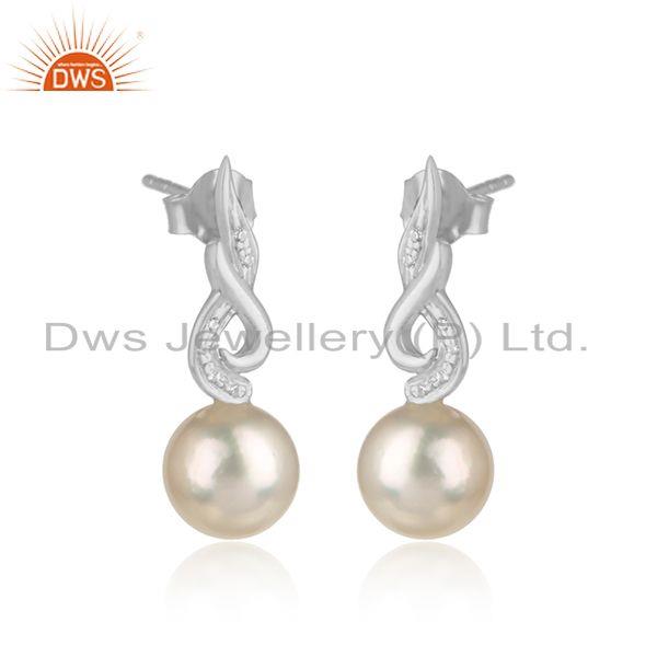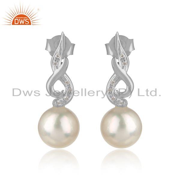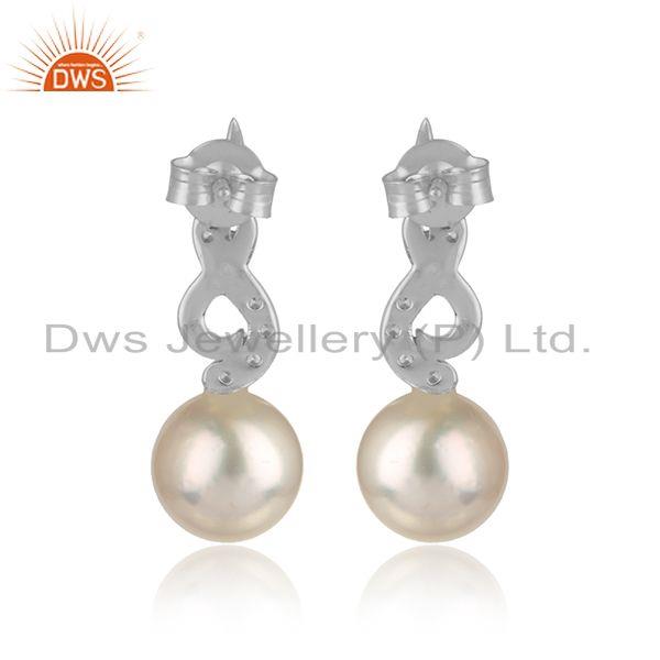 Designer White Rhodium Plated Silver Cz Pearl Gemstone Earrings